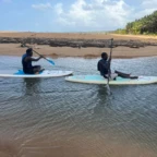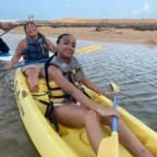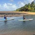 Next in the afternoon we had different sandwiches some having Cubanos, turkey sandwich and a gyro and got to ask Ramon some questions about the ecosystems in Puerto Rico. After eating we went straight back to work and finished right on time to swim in the river. During that time some of us were tanning and sun bathing, while others were playing in the sand or having a good time playing Marco Polo. After that we separated into to two groups and went paddle boarding for the first time. In the first group a few people fell into the river but laughed off the fall. In the second group a few us had a hard time adjusting to the paddle boarding environment, but in the end it all turned out well. During that time both groups were able to learn more about the mangrove trees, and how they protect the ecosystem.