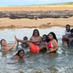 After working for 6 hours under the hot Puerto Rico sun, we left for the big yellow house. There we got ready to have free time. We chose to go to the beach. The beach was a 5 minute walk away. There, we played in the water, playing soccer and volleyball, and taking photos by the shore. After a few hours we left and went the the house to freshen up and get ready for dinner. Tonight we had rice and chicken. After dinner we cleaned up and got ready for the salsa lesson. We learned salsa for an hour, then wrapped up and got ready for the night. we got an hour of phone time before we had to give it back. Then we went to bed. We can’t wait for what tomorrow will bring!