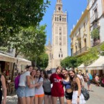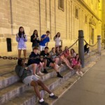 We started our last day in Spain in Sevilla. After breakfast, we visited the Plaza de España and then the Catedral de Sevilla, where we all climbed the 34 ramps to the top of the Giralda tower. Then we did some last-minute shopping – some of us visited a handcrafted jewelry market, and others went to the Sevilla Football Club store. We had lunch followed by some helado and grabbed our bags from the hotel. It has been a very busy week, so many of us took a siesta on the bus ride to Málaga. Tonight, we had our final dinner outdoors at Vino Mío, a restaurant in the center of Málaga. The food was great, and we took lots of photos! We ended our night with a walk along the water. Now it’s late, and we have a big travel day tomorrow, so time to get to bed. See you tomorrow at Logan!