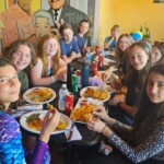 Our first full day in Puerto Rico was quite enjoyable. We woke up to a beautiful breakfast of local foods on a rooftop with a view of the city and the ocean. We drove to Old San Juan where we had a historical tour that showcased the old architecture, history, and vibrant life of the city. Students had the opportunity to go to a souvenir shop where many purchased gifts for their families or themselves. We then were able to spend some free time at Seven Seas beach. Students swam and played games while in the water. But sadly the beach time cut short due the unfortunate timing of a storm. Everyone made the most of the situation staying sheltered and playing with each other. Later we had some free time getting back from the beach to shower and wind down before the showcase of tomorrow’s itinerary and tasty dinner. After that we made a community contract that everyone made and signed. We will keep you updated as our Peace Study Trip progresses.