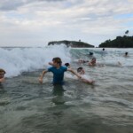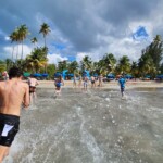We started the day with an unforgettable walk to the middle of nowhere – El Yunque Rainforest. It was very muddy because of the daily rain and it was almost as slippery as ice. Many people ended up in the mud, staining every inch of their shoes and even decorating parts of their body with smiley faces. It was a muddy, but rewarding hike because at the end we got to a large fresh pool of water. We got to swim and play around. We went to a beach side restaurant for lunch. Many people tried grouper fish for the first time. We then went souvenir shopping and spent the afternoon at the beach playing games like football and sharks and minnows. After some down time at the hotel, we had an educational discussion by Ramon from ECOSOL on sustainable tourism in Puerto Rico. At the end of the day, we had a fun pizza night. Tomorrow, we will move to the Big Yellow House and start service work, but more on that tomorrow.