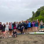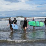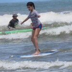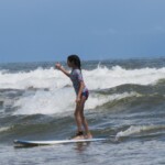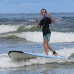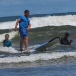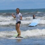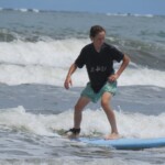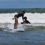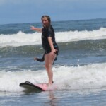 Today we got to sleep in late. We started the day with delicious breakfast that contained pancakes and fruit ! Then it was onto the road for us! We ventured on to the beach ready to absolutely shred the gnarly waves! It was some peoples first time surfing and everyone did so good! We took a break from surfing mid way and got some bananas and oranges. We also got some refreshing water. Then it was back out on the waves for 1 more hour. People learned how to balance when others learned how to turn and ride the wave down the line. After we took some pictures and then got free time to swim. Then we headed back to the hotel and swam in the pool and took showers. It was at that moment that we learned that some people have shrimp in their hair. We washed it out though! (Mostly) than we got some yummy lunch of veggies and chicken and rice and beans. It was a great morning in Uvita!
