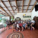 We then hopped back into the buses and drove into the town of La Fortuna. There we spent time shopping, talking to people, and practicing our Spanish. Afterwards we were treated with a wonderful lunch from a local pizza restaurant. After our hunger was finally satiated we drove to a wildlife sanctuary named ASIS. When we arrived we were greeted by a very friendly guide named Carlos. He brought us through the sanctuary where we saw many animals such as macaws, monkeys, and toucans as well as witnessing a wild sloth among the treetops. Carlos taught us about the dangers of keeping wild animals as pets. It opened our eyes to the hardships faced by animals. After our tour we were treated with freshly baked cookies as well as lemonade. As we rode back to the hotels we saw a big tropical thunderstorm. We ran through the rain and while we waited for the storm to end we connected with our classmates. After relaxing and swimming in the pool we headed up to dinner. There we had chicken fingers, salad and a tropical drink. Truly a wonderful day as well as a spectacular sendoff to our next adventure at the beach.