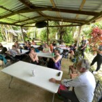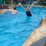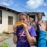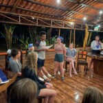 After our hot day of work we returned to our cabins and were welcomed by the pouring tropical thunderstorm. After the heavy storm passed, we played many games in the pool. Later that lovely evening, we were enthusiastic to have a dance class led by Randall that showed us another side of the beautiful culture. Next, we had an amazing dinner of pasta and chicken and bread with the mango and papaya that we picked earlier. Our day ended with hanging out with friends and enjoying the Costa Rican weather.