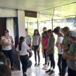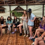 Then we took the vans to the zipline in the town of Arenal in the Arenal National Park. We saw an active volcano. On the zipline we were able to see the incredible scenery of Costa Rica. The highest zipline was 600 feet above the ground. Then we headed back to the vans and traveled to the grocery store where we practiced buying objects in Spanish. We bought local Costa Rican snacks. We went swimming in the pool where we experienced the warm and cold water. We ate a beautifully made dinner that consisted of strawberry and banana juice, beans, rice, and fish. Then we created a group contract to help us follow the rules. As we went to sleep we became excited about traveling to the school community tomorrow.