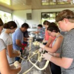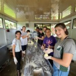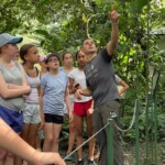 We had an amazing first day of our trip in Costa Rica. We were awakened by the patter of the rain and the thriving animals around our cabins. We each got ready in our beautiful cabins and made our way down to the delicious meal which consisted of fresh fruit and pancakes. A short time after that we walked the trail to our vans which took us to a local farm called Crisley’s Farm in the town of La Fortuna. At the farm we were able to learn about the history of farming in Costa Rica and experienced making mozzarella cheese first hand. We tasted fresh tropical fruit and we met the animals living at the farm. We also met a girl who lived on the farm named Naomi. We ate lunch at the farm where we enjoyed the cheese from the farm as well as beans and rice and chicken.
