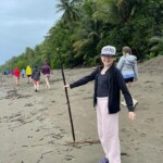 This afternoon we took a walk to Uvita beach and too a stream at the end of the beach. We then walked in a path through the woods to look for monkeys. The beach was very breezy and the sand felt nice under our feet. During the walk in the woods, we saw lots of little ants carrying food in a line. After we got back to the beach some people went to the supermarket, some swam, and some did arts and crafts. After swimming we had dinner which was spaghetti and meat sauce and salad. We finished the day with some chill time and some laundry.