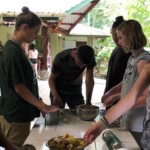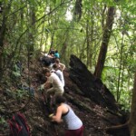 We had an early morning today hiking into the rainforest to do some service work. We did some digging to help with irrigation along the trails. After that we hiked further in to continue widening trails. At the end of the morning we walked to a waterfall and washed off in the refreshing water.