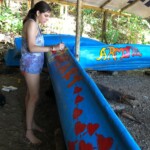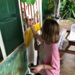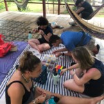 As soon as we reached Ricardo’s, I excitedly reunited with his beautiful kitty named Tigresa. We spent the next few hours painting boat oars, surfboards, and canoes, with the goal of displaying colorful, positive messages and quotes to encourage volunteers and onlookers to stay inspired while making a difference in the world. After completing our masterpieces (besides Kevin’s evil baby doll), we hiked back to the hostel and enjoyed a lunch of lasagna and garlic bread. Tired from all our hard work, we then sprawled out on the hammocks for a relaxing nap. At five, we again hiked to Ricardo’s house to eat dinner and quickly head to bed, to ensure we will be energized for our turtle patrol at 1:30 AM tomorrow.