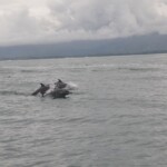 After beginning our day with a classic Costa Rican breakfast of eggs and gallo pinto, we hopped on a bus in order to head to a whale watching tour. We cruised on a boat with our super friendly guide, Walter, who educated us on how and why different animals migrate through the pacific ocean during this time of year. First, we spotted a mom and baby humpback whale go in and out of the water while the baby was feeding. Nearby, we also found a male and female sea turtle mating, which was definitely slightly uncomfortable. On a small island completely inhabited by birds, we witnessed the circle of life in action when we saw a black vulture attack and feed on a smaller white bird. The guides surprised us with fresh pineapple and watermelon, and allowed us to swim at a cool spot by another island. My favorite find of the day was for sure a family of spotted dolphins gracefully jumping around our boat.