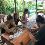 We started off the day with some gardening, however many things went wrong there. While Jadyn and I started digging our first hole I broke open a water pipe which was very problematic but also not my fault. Then, while Jadyn and Ava were digging a hole, Jadyn also broke open a water pipe! Today we learned the lesson that we are not gardeners. Once we finished gardening we ate lunch and chilled for a bit. Next up was arts and crafts, so we went down to the beach and made bracelets, I had many failed attempts and zero successful attempts. Once the rain set in we moved our bracelet making to the hammocks. We were stuck there for a bit so we played some card games and napped until it was time for dinner. Dinner was, as usual, amazing. After dinner we watched a half an hour video on the Life for Life Sea Turtle project and learned about its start up. After the video we had a lot of fun playing Pictionary. Some highlights of the game were limbless Jadyn, Benji (the dog here) explosive farts, and Oprah.