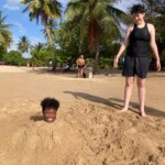 After spending more money, we returned to the vans to embark on our journey to Luquillo. Once there, we arrived at two beautiful hostels known as Surfing Turtle and Casa Coral. We swam in the cool water of the Las Paylas river for approximately 7 minutes and 28 seconds before God (our Global Works leaders: Lauren and Nahely) said “Nuh-uh” (Retorts 13:4) and we had to return to the hostel because of the rain, safety first. After games of dominoes and Minecraft UNO were able to lift our spirits, we all left for the bioluminescent bay, where wading through the sea to our kayaks through strong winds and rains reminded us of an opening cutscene to a video game. Despite this, the rain made the experience more enjoyable, as the drops lit up the bay upon impact. We were able to see schools of fishes zipping around below the water, lit up by the microorganisms that release the same chemicals as fireflies. Overall, this day was an amazing experience and we are going to miss this place very very much. This trip has meant so much to us all and the people we interacted with, and we are so thankful to Global Works to give us this opportunity. We would like to thank all of the staff who have taken care of us (Lauren, Nahely, Leisa, Laura, Suzanne, Fernando, Daniel, John, and Mario), the family we helped (Angel, Maria, and Eggy), William, for letting us help the family, Meridian, for providing us with this trip, and our families, for funding it. Thank you Puerto Rico!!!!!