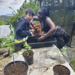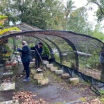 Once we all arrived at Casas de la Selva/Tropic Ventures, we went through a quick introduction and safety briefing about the projects ahead. Some of the group went to build a drainage ditch while the majority of us stayed and worked in the nursery (the plant kind). The nursery was looking a little worse from wear – filled with moss and rusty tables – after time and hurricane Fiona had left their mark.