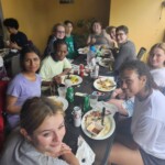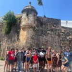 Our personal rooster, Leisa, kindly woke us up at 6 am on the dot. Some of us slept good while others felt like they slept on rocks… However, breakfast made up for it! We had french toast, oatmeal, sausage, fruit, yogurt, home fries, and cheesesticks, delicious! That prepared us for our day with Alvin a.k.a our Puerto Rican man in charge, but we were uncomfortable with the heat (there was a heat warning ). He led us on a wondrous journey through Old San Juan and its monuments. One monument that touched our hearts was the story of Paseo De La Princesa (the story of the name of the area with crazy large walls, we’re talking like 60 ft tall with cats sitting on top, crazy ). The story helped us really connect and understand what we were looking at as we traversed the land, with Alvin. We felt he was the best person to give us the tour, not only because of his vibes and energy, but because of his bright and earnest child, who tagged along too! He informed us on the history of how Puerto Rico used to be called San Juan and we had trivia questions about it at lunch. El restaurante se llama “El Jibarito”. The food was so amazing “I fell in love with meat again” (Audrey, 9:47 pm). Alvin then “forced” us to go shopping (oh no!), some people splurged. Some stumbled upon piña coladas (where it was first created, allegedly!) that really gave us a chance to continue our adventures as well as cool down after all the heat . The cobblestone, that which we walked on, was a deep connection to the 300 year old Puerto Rican street history. It was made out of cobalt which faded into all sorts of blues, which we found super cool (I wish we were cool like them ). Shout out to Global Works, Lauren, Nahely, Leisa, Susanne, Laura, and of course, SHOUT OUT OUR MAN FERNANDO who’s been graciously driving us. We arrived quickly to the BYH and then made it to the beach!!! Unfortunately, due to the rain, we only stayed for 15 minutos, but Uno (the game) made up for it. Then dinner made its way to our gastrointestinal tract, with meat, plantains, bread, and salad. To finish off the sweltering hot night, we watched a documentary about Puerto Rico just before Hurricane Maria, and ended up knees deep in a discussion of Puerto Rican politics, history, food, colonization, Hawaii, and appreciation. It really sealed off the day with something to chew in our dreams . Hope you all (and us) have sweet dreams!