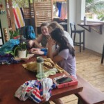 We also left our mark on the nursery, as it was looking quite clean, organized, and filled with vibrant life when we left. The process was long and hard, but we were motivated to continue this project by the wonderfully cool breeze and fresh air. Joking along as we went, groups of people cut weeds, raked leaves, and potted plants. Afterwards, we enjoyed a wonderful lunch surrounded by green foliage on two sides and the beautiful, natural scent of dirt. After lunch, we enjoyed a dessert of rich brownies, alongside a similarly rich discussion about the events of the day and the differences we made and can make in our daily lives. Overall, this was a rewarding experience that left us feeling fatigued but jubilant. Back at the BYH we had dinner, journaled and played Fish Bowl. It’s a game similar to Charades in which we got to put our Spanish into practice with words and phrases from our days in Puerto Rico.