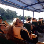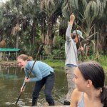 Today we woke up super early, around 5am, to see what the residents of Manu Learning Center call “Collpa”. Collpa is when colorful macaws, parakeets, and parrots cross the river to an island early in the morning to eat the clay of the clay deposits to neutralize the toxins from their diet. When we got to the island the sunrise was very beautiful and you could could see the snow capped mountains in the distance.