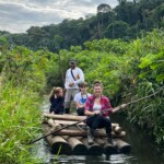 As the early morning fog spread over the mountains that rose in front us, we boarded the boat one last time for a 15 minute ride to a small island. We walked about half an hour along a cobblestone trail, over a few creeks and surrounded by dense jungle that opened to a marsh and small river with several traditional wooden rafts. We practiced our punting skills as we maneuvered a log boat at a whopping 2 kilometers per hour to a tower that looked over the surrounding wetland. While here, we saw a many birds and a colony of leaf-cutter ants with over a dozen entrances to their underground home.