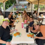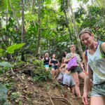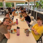 We woke up and had breakfast, of pancakes, eggs, potatoes, and fruit. After breakfast we left for El Yunque National Park rainforest. We walked along a treacherous muddy path to a stream with pools we could swim and wade in. It was a beautiful moment to connect with nature. After the walk and the experience in the water, we then ventured back to the vans washed off and headed to lunch at El Terruño, and then went to go shopping on the strip around it after, some of us we got virgin piña coladas, at the end was expensive but really yummy. We then headed to the beach and spent some time there before going home to relax and pack for the early trip in the morning. Those from the Surfing Turtle went to the Luquillo Beach Hostel for a pizza party! To end the day we then got dressed to go kayaking in the bioluminescent bay. It was a super rainy night but that didn’t take away from the awe of seeing naturally glowing water. As we paddled swirls of bioluminescence shone a light blue. Our destination was a lagoon where we were able to explore and race kayaks on our own, it was amazing and magical, our trip leaders said they had never seen such a bright bioluminescent night, and it was because there was no moon and it was very cloudy. Finally we headed back to the hotel for some sleep before our early flight.