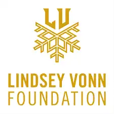Gold letters "LV" above a stylized snowflake graphic, with the text "LINDSEY VONN FOUNDATION" in gold below on a white background.