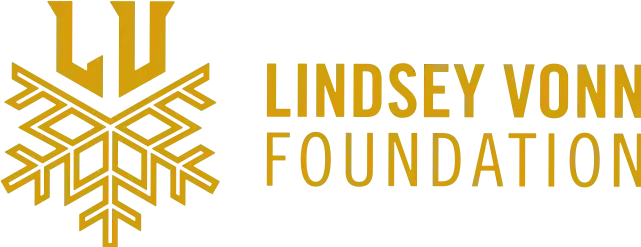 Gold Lindsey Vonn Foundation logo featuring a snowflake design with the initials "LV" and the organization's name in bold, uppercase letters.