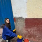 Today, the group split into two again. Some kids went to a school nearby, which was a preschool. Some people built a table and painted it, some people painted a mural, and some mixed in and then poured in some concrete. Alida painted a table with some others, which needed problem solving because there were no instructions and they needed to think and communicate together. At the preschool, some kids were there, and they were friendly and social, Juliet & Nina painted the mural at the school; she did the background with the paint roller. The paint was kind of streaky, and needed multiple layers. One of the teachers taught her some Peruvian sign language, colors like red, blue and green.