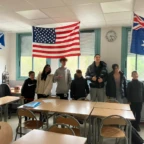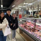 We quickly settled in and started to assemble the goods we bought at the market for our host families. Once our host families arrived, we practiced some french by asking them about their lives. We talked about things like family, friends, pets, school, work, life in the US and in France, and the different foods we eat. After enjoying the French charcuterie with good company, we played a quick trivia game of facts from both the United States and France. We took some pictures with our host families and said goodbye after a long day because tomorrow we will meet them again for dinner!