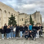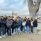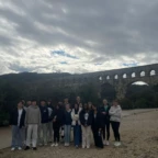 Today we started our day at 8:30 with croissants for breakfast at the hotel in Avignon! After, we walked the streets of Avignon to a town market filled with all sorts of things. We acquired charcuterie, cheese, juice, cake, spread, and bread. We split up into groups and had to order at the market in French ourselves. This was to supply our “pot d’accueil”, the welcome meal we had with our host families later that night. After we went to the market, we brought our things to the bus and went on our way to the Pont du Gard! We stopped into the museum and walked around to learn about the history of the aqueduct. We learned about how it dates back to ancient Roman history, around 19 BCE, and was made by Augustus Caesar’s son-in-law who was named Marcus Vipsanius Agrippa. There are three sets of arches standing at 47 meters tall which supplied the city of Nîmes with water for over five centuries. After going on a short hike around the mountains surrounding the Pont du Gard, we boarded the bus and made our way to Carcassonne. After a few naps on the bus, we arrived in Carcassonne two hours later!