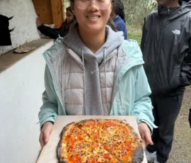 We split into three groups to do different activities. Some of us helped in the chicken coop, some planted almond and chestnut trees, and others cut branches to help with the fertilizing process. It was a great hands on experience, despite how dirty and rainy it was, and we enjoyed every moment of it. At lunch, Matteo, who is from Napoli, made pizza for everyone with the ingredients that we chose, which was the best meal we could have had after a long day of work.