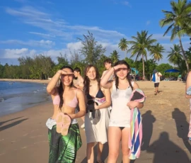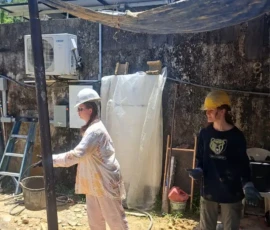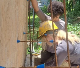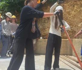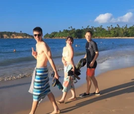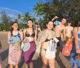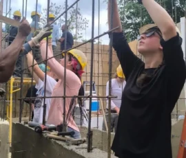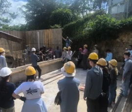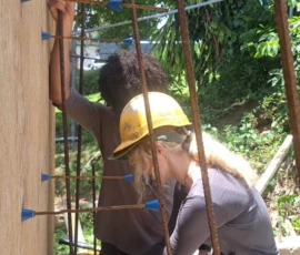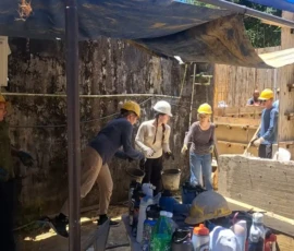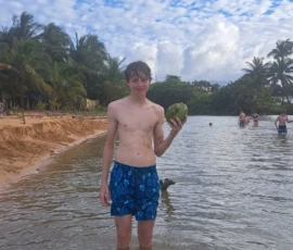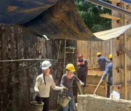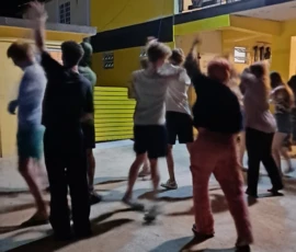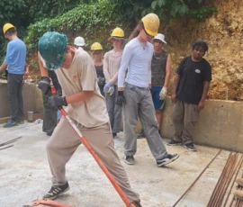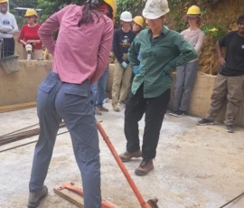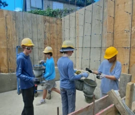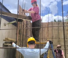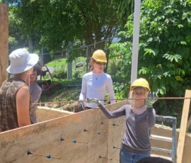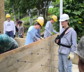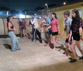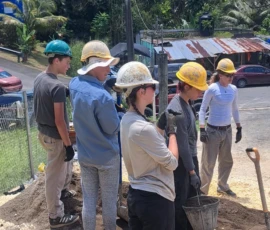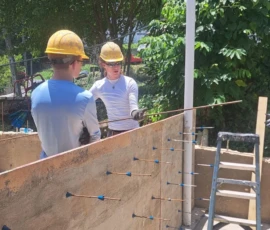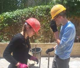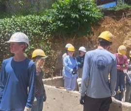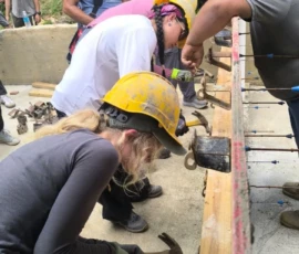 We woke up to the sounds of waves crashing against the sand and gorgeous weather. We ate a breakfast of fresh fruit, pancakes, and potatoes. We jumped on the bus and said goodbye to Casa Coral, we had a two hour journey ahead of us to get to Villa Del Río. Through winding roads and a tropical forest that looked unreal we made it to Casa Maria, our service site. We are helping a family of six who are currently cramped into a small house, three rooms are being built on the back of the house. We met the builders Angel, Willy, and Eggy who welcomed is with kind smiles and loud laughter. We worked for a few hours creating wooden frames which will hold concrete to create the walls of the home. We also cut long pieces of rebar in half, which was a very fun challenge. We walked to another house close by where our generous host Maria served us lunch, she was kind and welcoming. We ate a delicious meal of fried chicken, rice, and salad. After a while of cooling down at Maria’s we went back to work. We began securing the woods walls with rebar and wire. We worked alongside some Montessori seniors from Puerto Rico also working at the site. At 3:00 we were done for the day. We said goodbye to the worksite and drove to the place we will call home for a few days, The Big Yellow House. We all walked to Cerro Gordo a beautiful beach nearby. We splashed around in the waves and played football after having some fun we went back to the Big Yellow House. Dinner was served and was delicious as every one of our meals have been. We ended the long day with Salsa lessons with our instructor Jara. We struggled at first but after awhile we couldn’t stop dancing. Today was a day of new experiences and trying things that could be a bit uncomfortable, but we all had fun and are excited to continue this adventure.