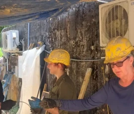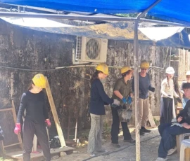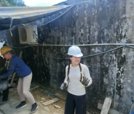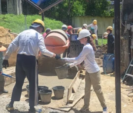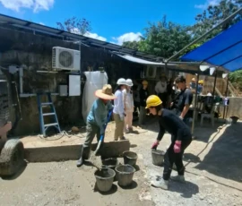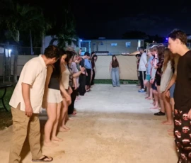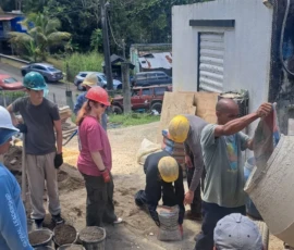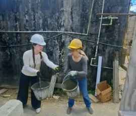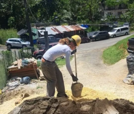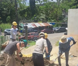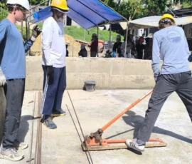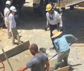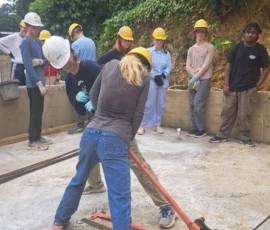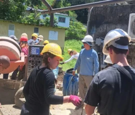 Starting day 3 in Puerto Rico, we had a full spread for breakfast of pancakes, sausage, eggs, and fresh fruit. Our bus arrived shortly after and we drove to the construction site for our 2nd day of service. We continued to cut rebar and tie it before starting to make cement to build the walls. We split into groups, half of us made the cement by putting together rocks, sand, water, and cement. The other half made an assembly line and passed buckets full of cement down to people who poured them into our molds for the walls. After that, we went down to Maria’s house for another delicious home cooked meal of spaghetti and meatballs with salad for lunch. After lunch, we continued to work with the rebar before getting back into the bus and returning to the Big Yellow House. Some of us got changed into swimming suits and we walked down to the beach. We then walked back to the Big Yellow House, played some sand volleyball, took showers and ate a yummy meal of chicken, fried rice, rolls, and salad with little pastries for desert. After dinner, we watched an impactful documentary about Hurricane Maria and the effects and destruction it had on the people and island of Puerto Rico. We then played some more sand volleyball before going to bed and resting for our full day tomorrow.
