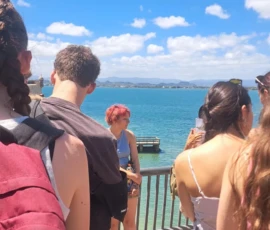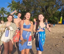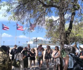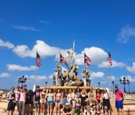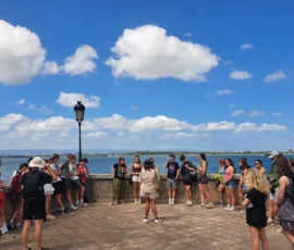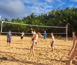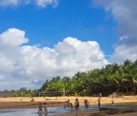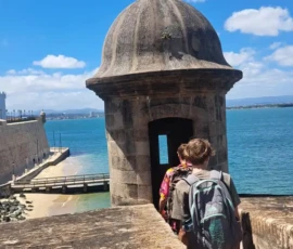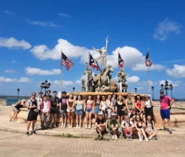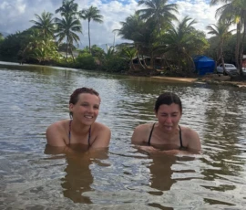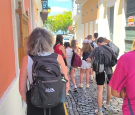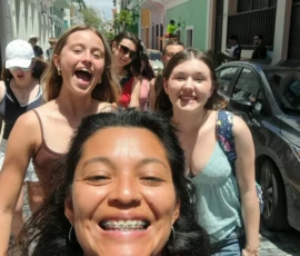 Calm mornings waking up near the beach, hearing birds chirp, and eating delicious home cooked meals. Gathered together, we traveled by bus and observed the busy city life of the town of Luquillo as it passed by. Upon arrival in Old San Juan we met our tour guide, Sara, who taught us about the culture, the people, the symbols, the music, and the history of Puerto Rico. Together with the tour guide we walked through the town and ended the tour at El Morro, a castle created as a place of defense in Puerto Rico that was used up until WW2, where we split up to explore the castle grounds. Afterwards, we walked to El Jibarito were everyone enjoyed delicious meals of Mofongo and Arroz con Habichuelas, and a nice cold glass of juice or soda. After filling our bellies, we walked to a strip of shops where everyone was able to explore and souvenir shop! Once we finished shopping we walked to our bus, reflected on our day together, and began the journey home. Back at Casa Coral everyone changed into their swimming suits and got ready for a refreshing dip in the ocean and a small river that was close by. Everyone enjoyed their time spent in the water, playing with friends, and taking in the natural beauty of Puerto Rico. Ending the night on the beach, everyone came together and played a rewarding game of volleyball. Back home we all waited patiently for dinner by playing cards, corn hole, and making fond memories together. All together this experience, our first full day in Puerto Rico (can you believe it!!), turned out to be just as rewarding as it was tiring. We all came out of the day with brand new understandings of Puerto Rican life and culture.