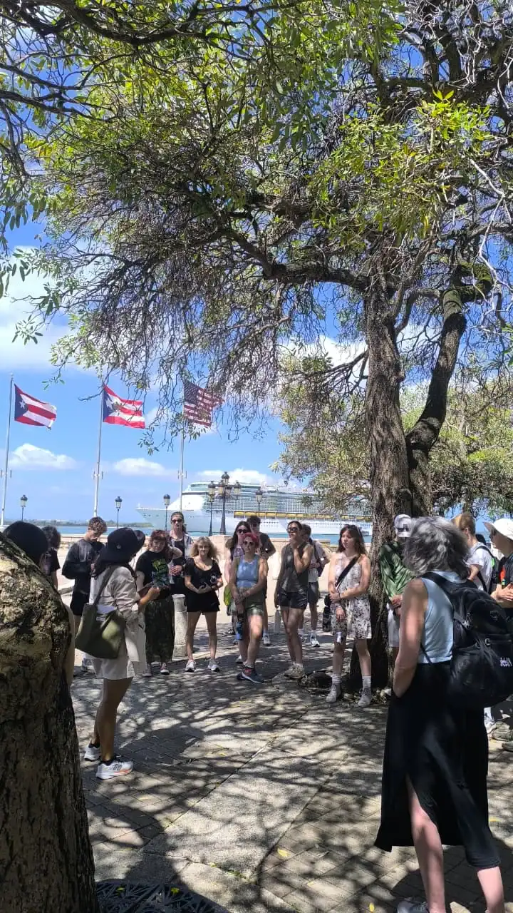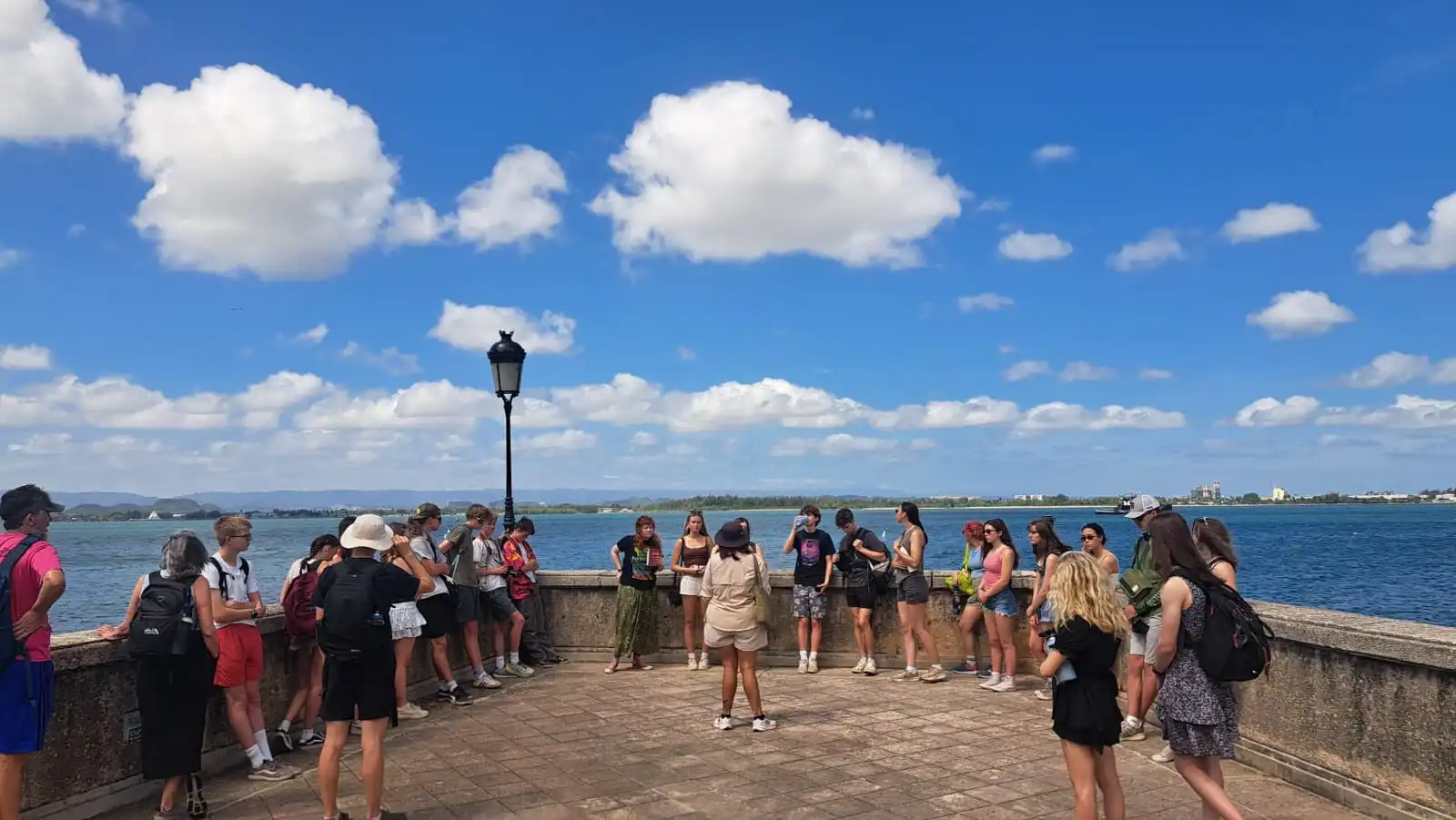 Calm mornings waking up near the beach, hearing birds chirp, and eating delicious home cooked meals. Gathered together, we traveled by bus and observed the busy city life of the town of Luquillo as it passed by. Upon arrival in Old San Juan we met our tour guide, Sara, who taught us about the culture, the people, the symbols, the music, and the history of Puerto Rico. Together with the tour guide we walked through the town and ended the tour at El Morro, a castle created as a place of defense in Puerto Rico that was used up until WW2, where we split up to explore the castle grounds. Afterwards, we walked to El Jibarito were everyone enjoyed delicious meals of Mofongo and Arroz con Habichuelas, and a nice cold glass of juice or soda. After filling our bellies, we walked to a strip of shops where everyone was able to explore and souvenir shop! Once we finished shopping we walked to our bus, reflected on our day together, and began the journey home. Back at Casa Coral everyone changed into their swimming suits and got ready for a refreshing dip in the ocean and a small river that was close by. Everyone enjoyed their time spent in the water, playing with friends, and taking in the natural beauty of Puerto Rico. Ending the night on the beach, everyone came together and played a rewarding game of volleyball. Back home we all waited patiently for dinner by playing cards, corn hole, and making fond memories together. All together this experience, our first full day in Puerto Rico (can you believe it!!), turned out to be just as rewarding as it was tiring. We all came out of the day with brand new understandings of Puerto Rican life and culture.