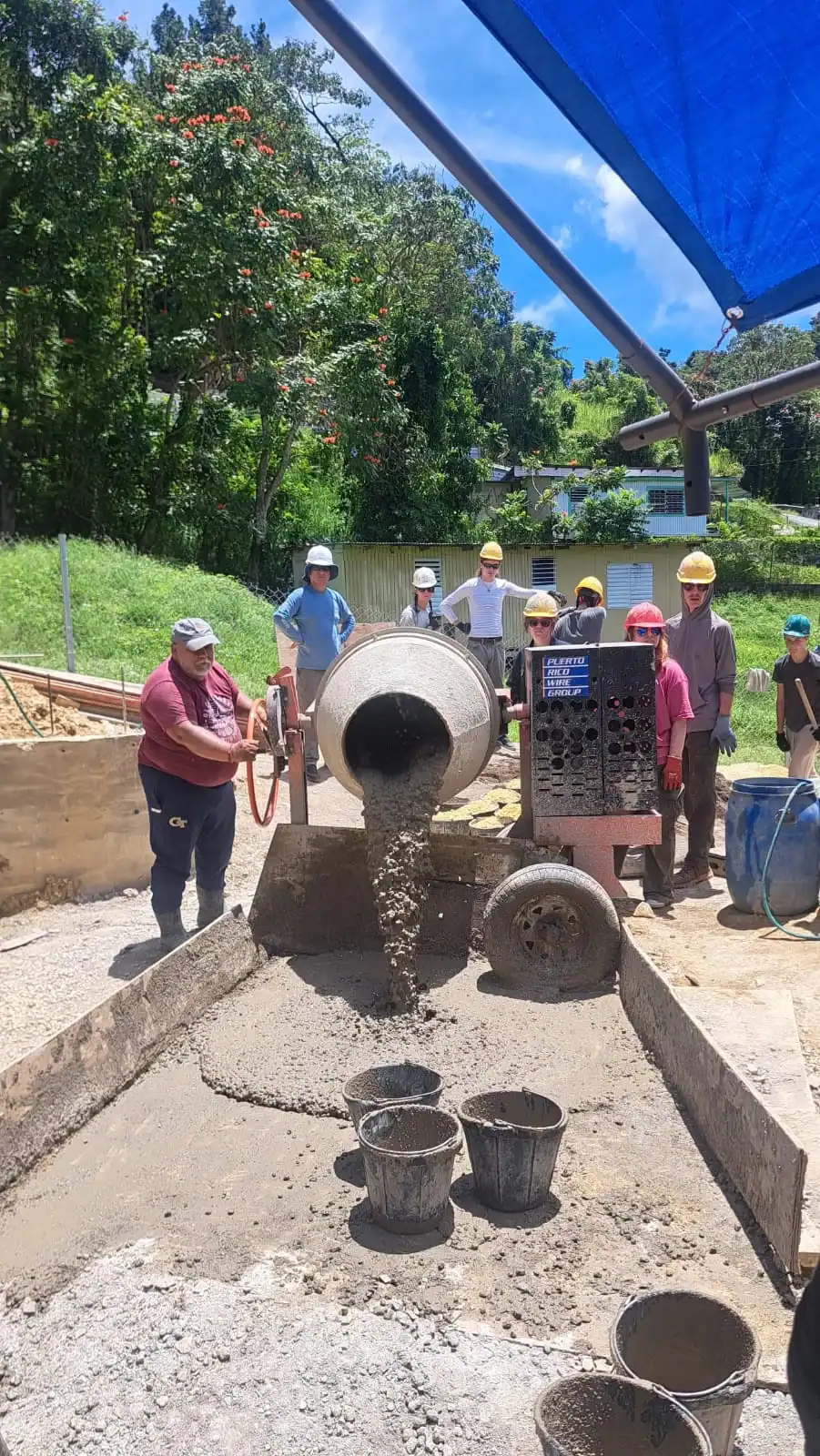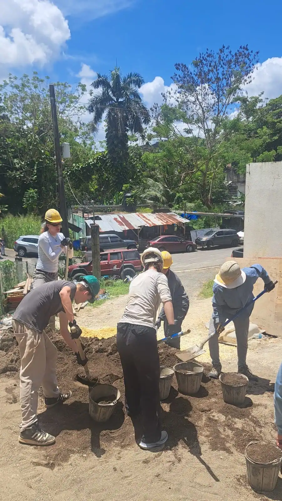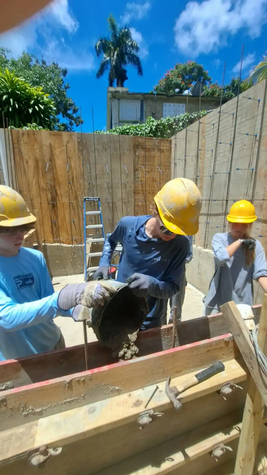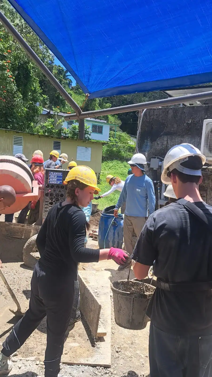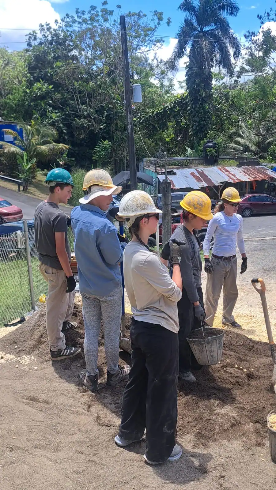 Starting day 3 in Puerto Rico, we had a full spread for breakfast of pancakes, sausage, eggs, and fresh fruit. Our bus arrived shortly after and we drove to the construction site for our 2nd day of service. We continued to cut rebar and tie it before starting to make cement to build the walls. We split into groups, half of us made the cement by putting together rocks, sand, water, and cement. The other half made an assembly line and passed buckets full of cement down to people who poured them into our molds for the walls. After that, we went down to Maria’s house for another delicious home cooked meal of spaghetti and meatballs with salad for lunch. After lunch, we continued to work with the rebar before getting back into the bus and returning to the Big Yellow House. Some of us got changed into swimming suits and we walked down to the beach. We then walked back to the Big Yellow House, played some sand volleyball, took showers and ate a yummy meal of chicken, fried rice, rolls, and salad with little pastries for desert. After dinner, we watched an impactful documentary about Hurricane Maria and the effects and destruction it had on the people and island of Puerto Rico. We then played some more sand volleyball before going to bed and resting for our full day tomorrow.