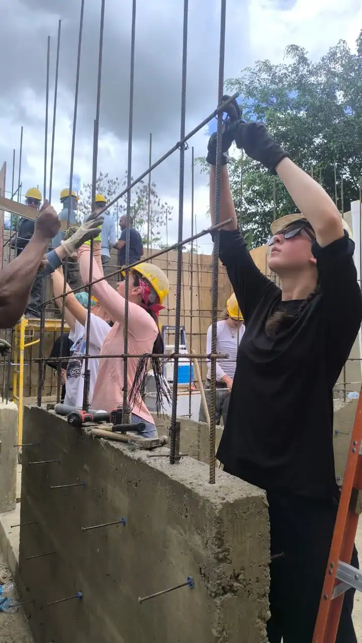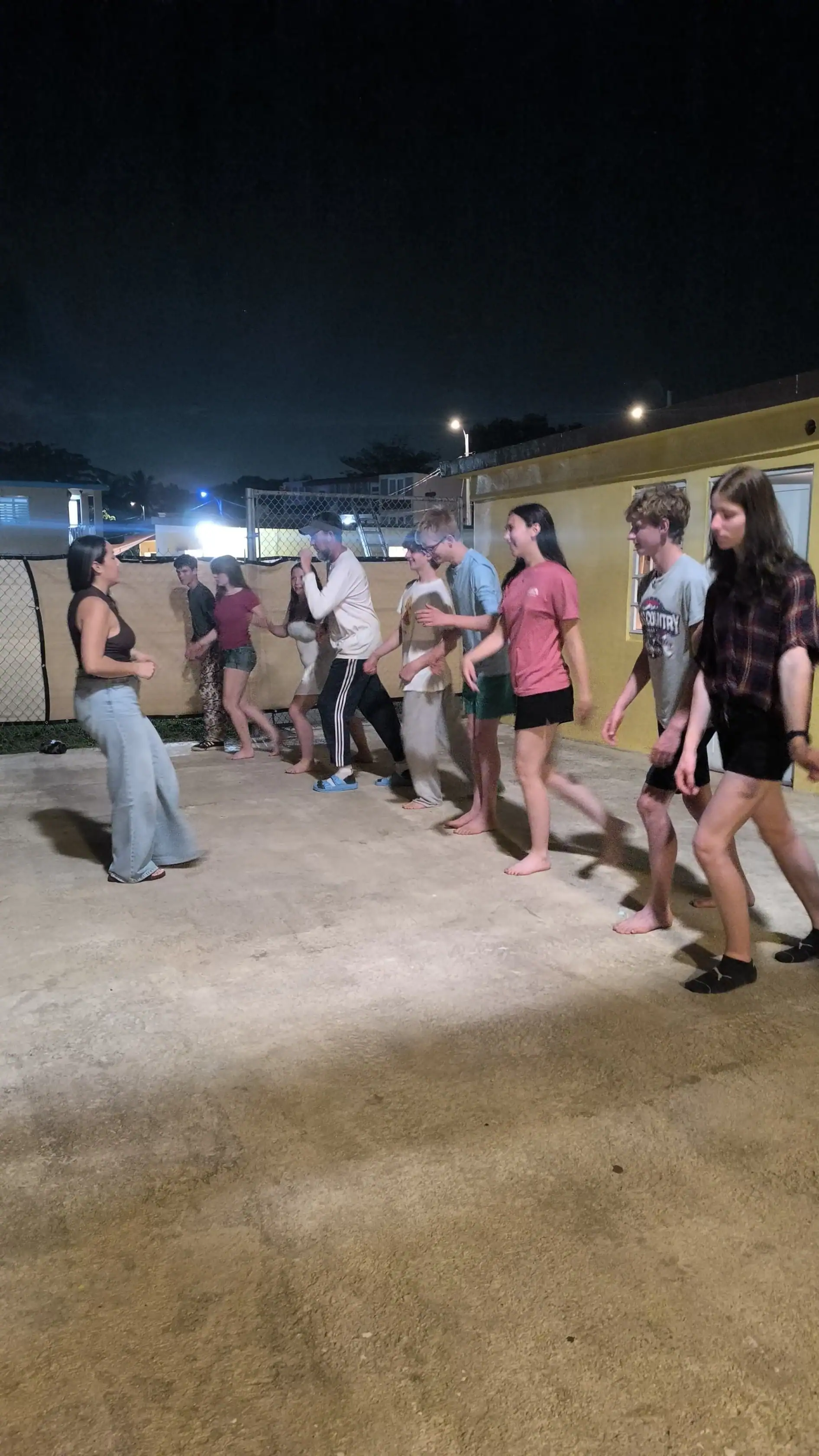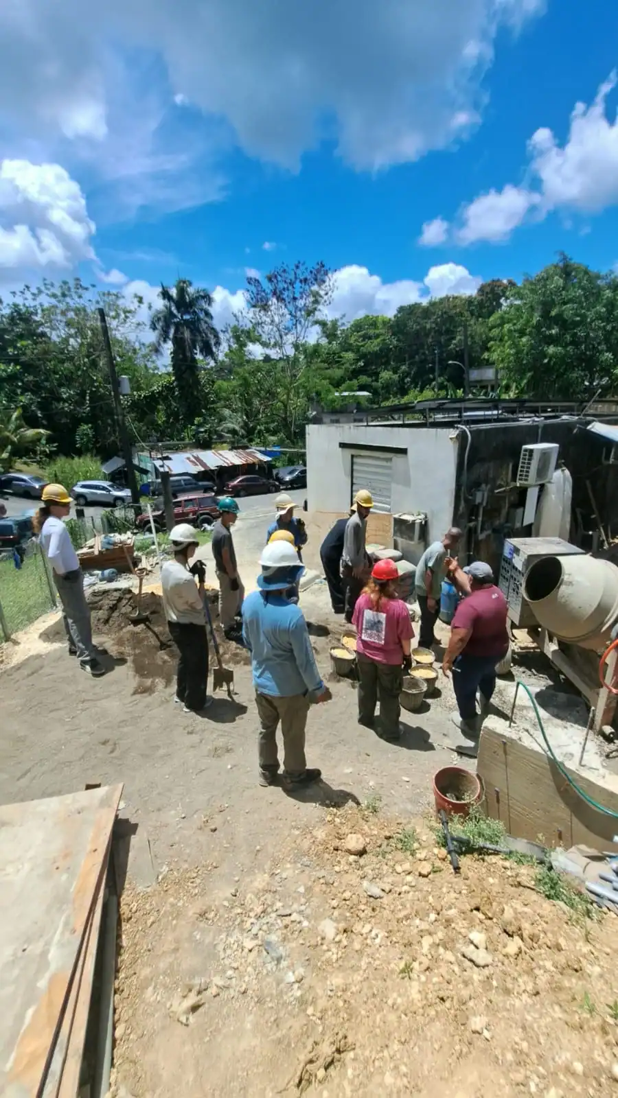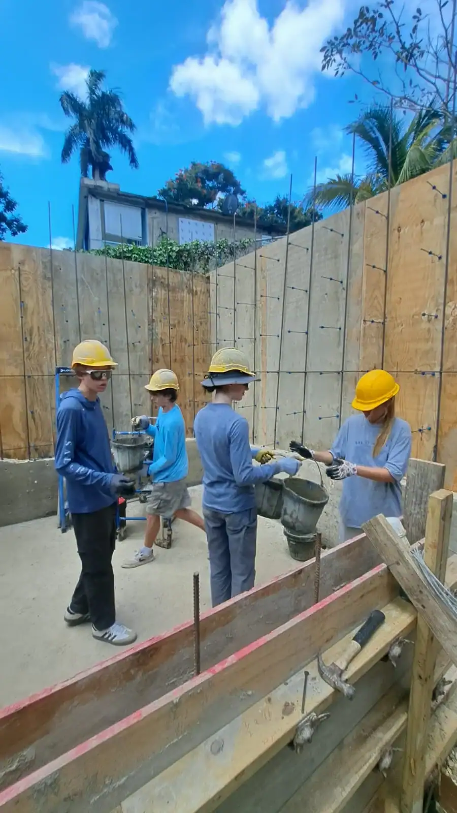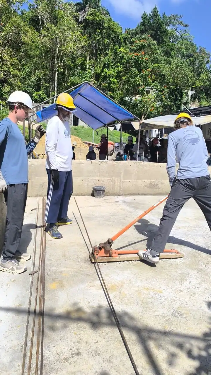 Starting day 3 in Puerto Rico, we had a full spread for breakfast of pancakes, sausage, eggs, and fresh fruit. Our bus arrived shortly after and we drove to the construction site for our 2nd day of service. We continued to cut rebar and tie it before starting to make cement to build the walls. We split into groups, half of us made the cement by putting together rocks, sand, water, and cement. The other half made an assembly line and passed buckets full of cement down to people who poured them into our molds for the walls. After that, we went down to Maria’s house for another delicious home cooked meal of spaghetti and meatballs with salad for lunch. After lunch, we continued to work with the rebar before getting back into the bus and returning to the Big Yellow House. Some of us got changed into swimming suits and we walked down to the beach. We then walked back to the Big Yellow House, played some sand volleyball, took showers and ate a yummy meal of chicken, fried rice, rolls, and salad with little pastries for desert. After dinner, we watched an impactful documentary about Hurricane Maria and the effects and destruction it had on the people and island of Puerto Rico. We then played some more sand volleyball before going to bed and resting for our full day tomorrow.