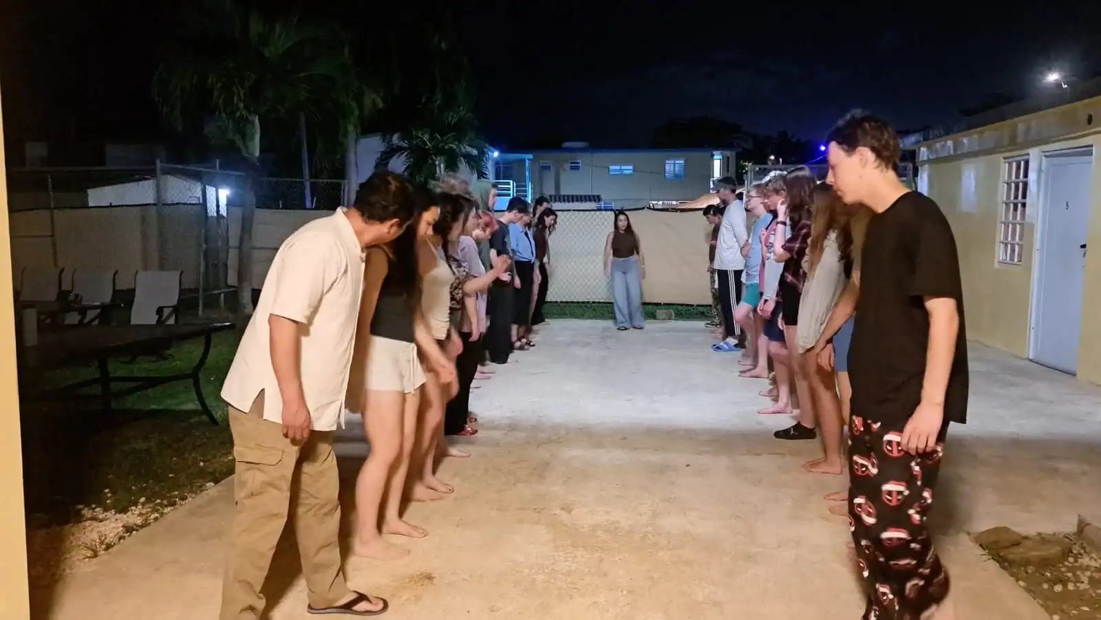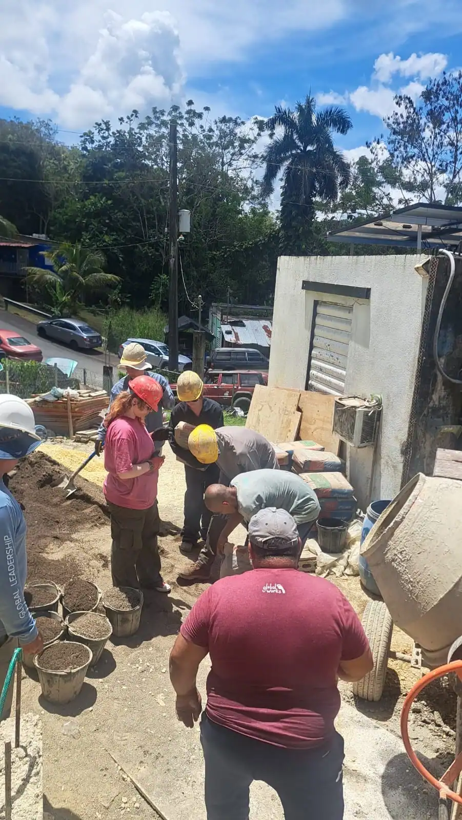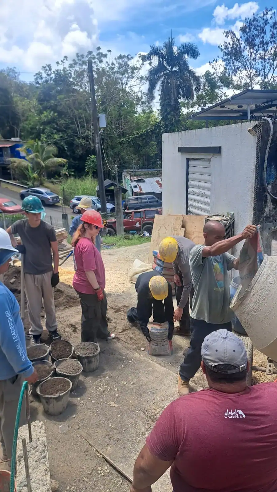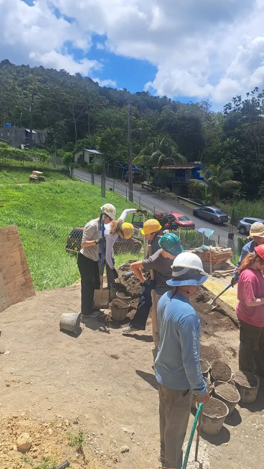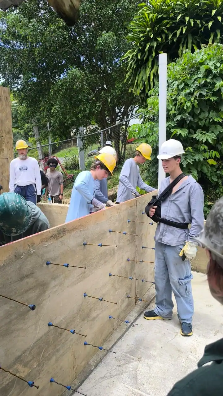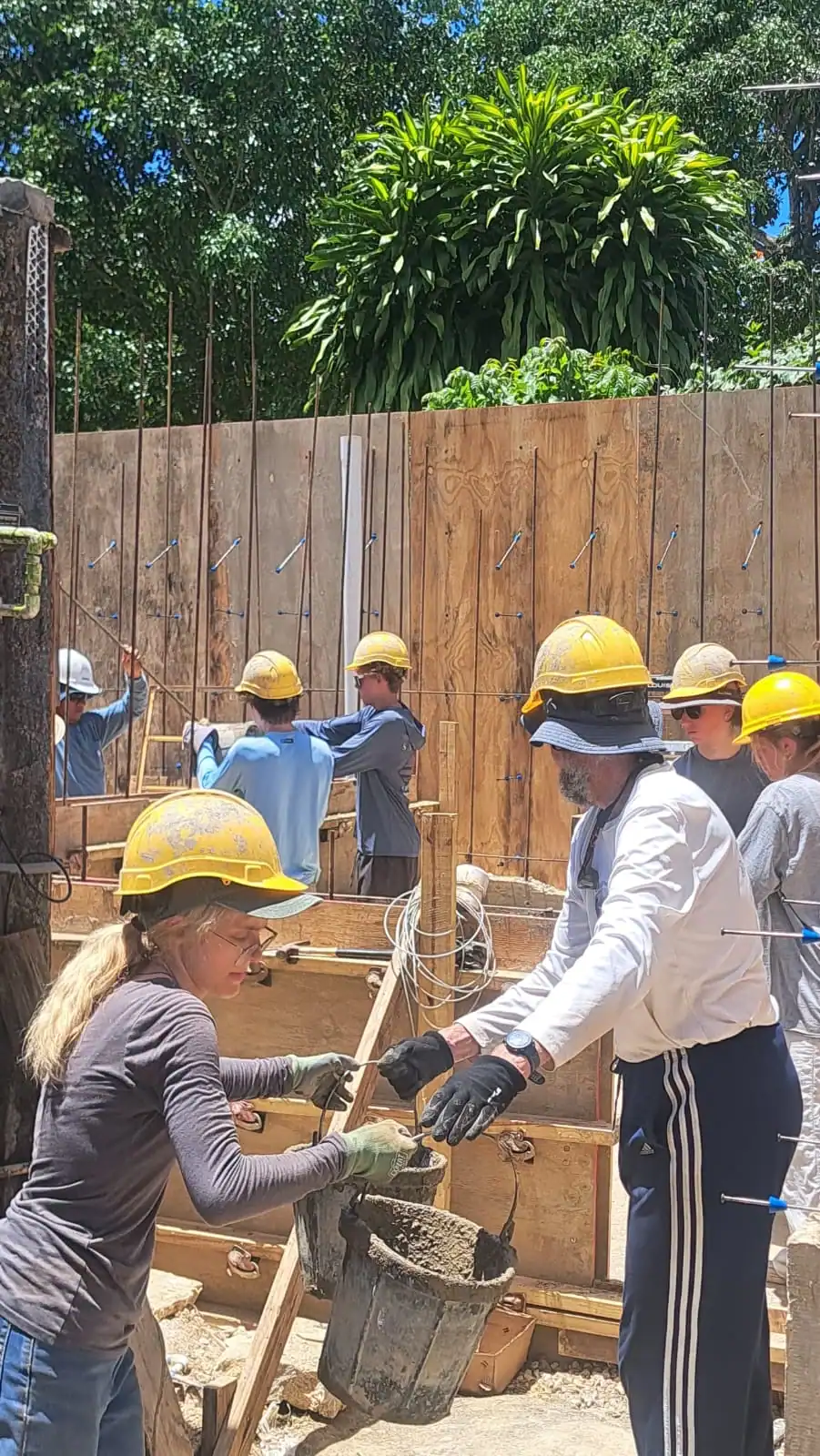 Starting day 3 in Puerto Rico, we had a full spread for breakfast of pancakes, sausage, eggs, and fresh fruit. Our bus arrived shortly after and we drove to the construction site for our 2nd day of service. We continued to cut rebar and tie it before starting to make cement to build the walls. We split into groups, half of us made the cement by putting together rocks, sand, water, and cement. The other half made an assembly line and passed buckets full of cement down to people who poured them into our molds for the walls. After that, we went down to Maria’s house for another delicious home cooked meal of spaghetti and meatballs with salad for lunch. After lunch, we continued to work with the rebar before getting back into the bus and returning to the Big Yellow House. Some of us got changed into swimming suits and we walked down to the beach. We then walked back to the Big Yellow House, played some sand volleyball, took showers and ate a yummy meal of chicken, fried rice, rolls, and salad with little pastries for desert. After dinner, we watched an impactful documentary about Hurricane Maria and the effects and destruction it had on the people and island of Puerto Rico. We then played some more sand volleyball before going to bed and resting for our full day tomorrow.
