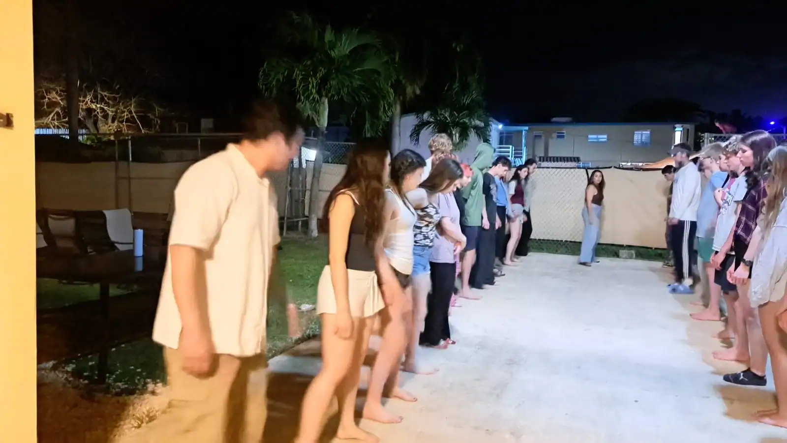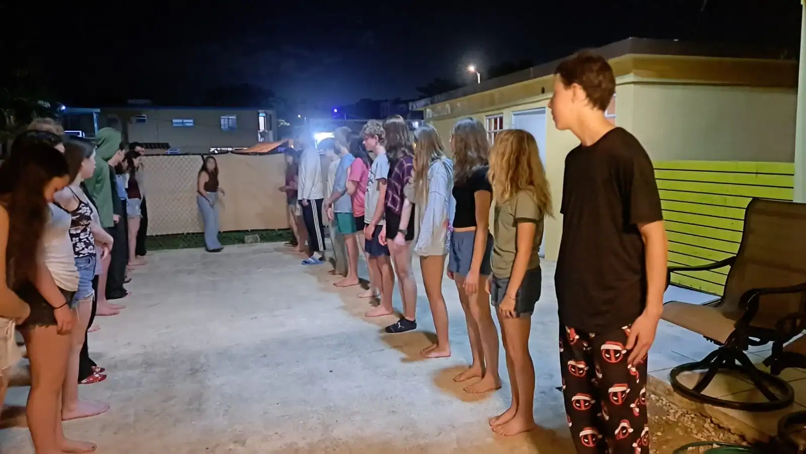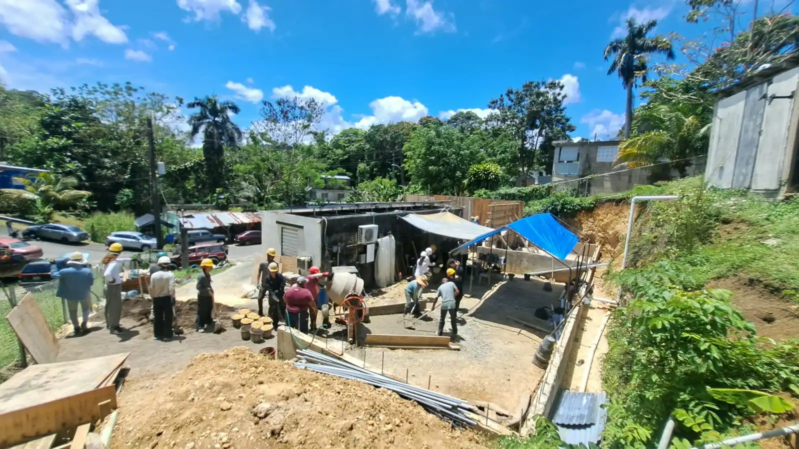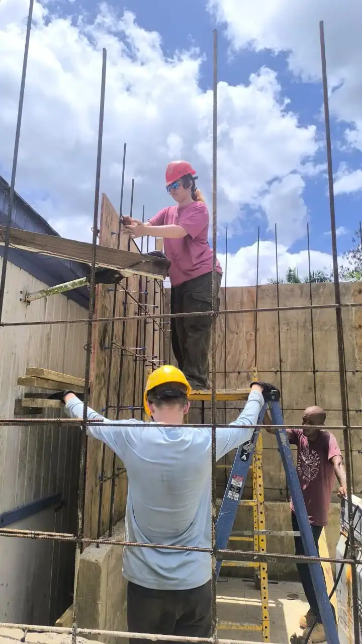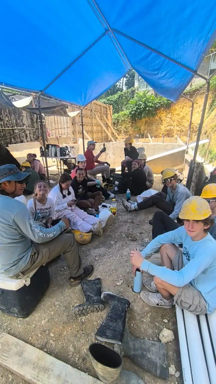 Starting day 3 in Puerto Rico, we had a full spread for breakfast of pancakes, sausage, eggs, and fresh fruit. Our bus arrived shortly after and we drove to the construction site for our 2nd day of service. We continued to cut rebar and tie it before starting to make cement to build the walls. We split into groups, half of us made the cement by putting together rocks, sand, water, and cement. The other half made an assembly line and passed buckets full of cement down to people who poured them into our molds for the walls. After that, we went down to Maria’s house for another delicious home cooked meal of spaghetti and meatballs with salad for lunch. After lunch, we continued to work with the rebar before getting back into the bus and returning to the Big Yellow House. Some of us got changed into swimming suits and we walked down to the beach. We then walked back to the Big Yellow House, played some sand volleyball, took showers and ate a yummy meal of chicken, fried rice, rolls, and salad with little pastries for desert. After dinner, we watched an impactful documentary about Hurricane Maria and the effects and destruction it had on the people and island of Puerto Rico. We then played some more sand volleyball before going to bed and resting for our full day tomorrow.