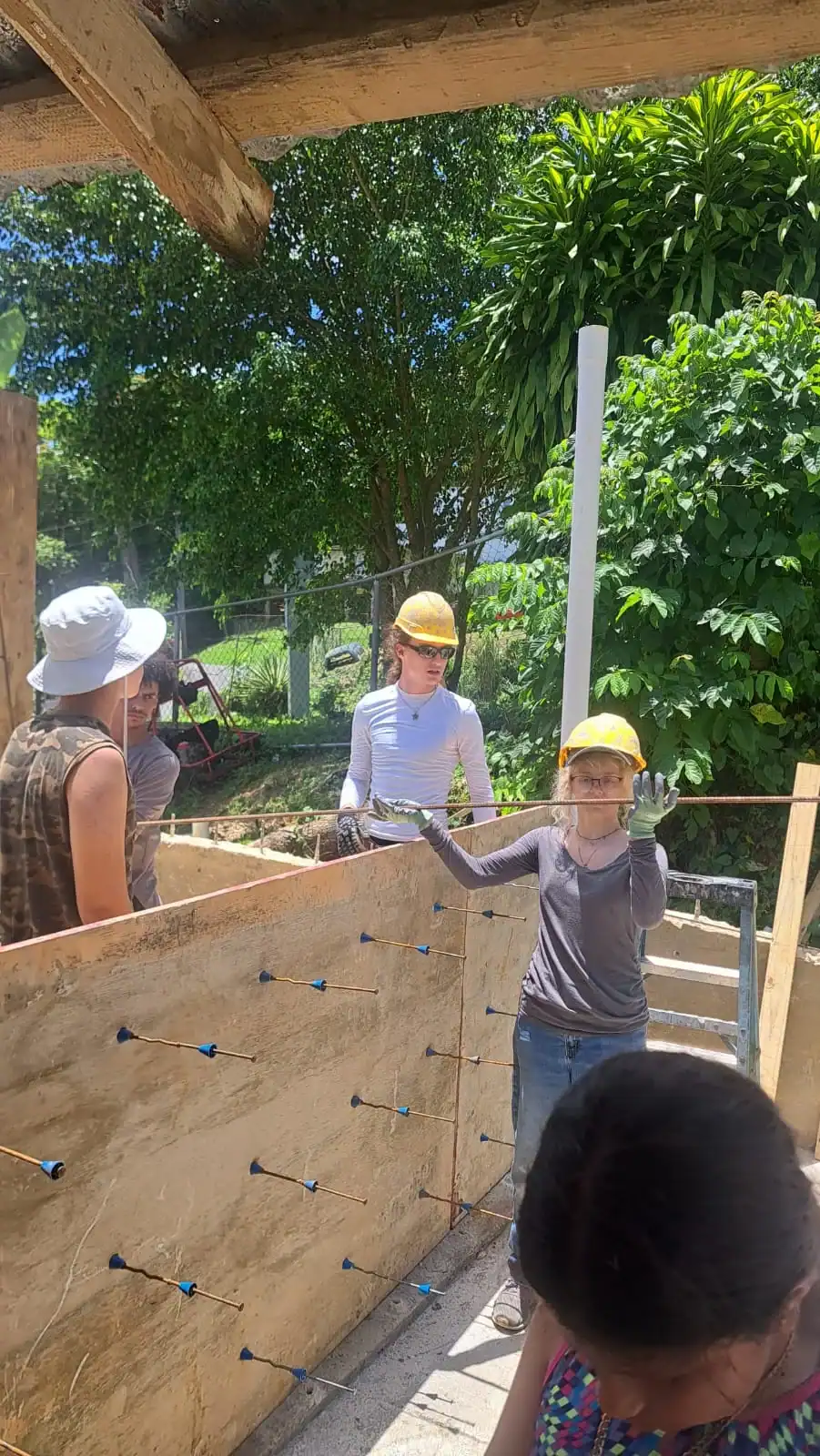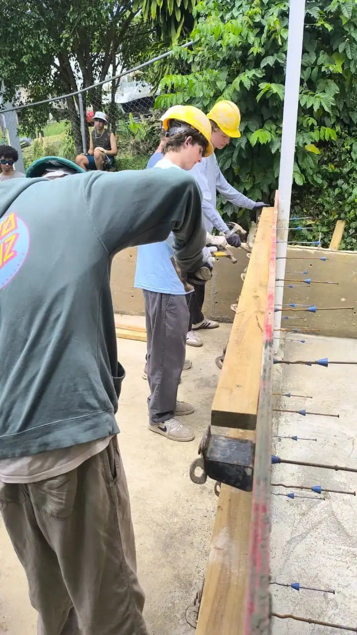 We woke up to the sounds of waves crashing against the sand and gorgeous weather. We ate a breakfast of fresh fruit, pancakes, and potatoes. We jumped on the bus and said goodbye to Casa Coral, we had a two hour journey ahead of us to get to Villa Del Río. Through winding roads and a tropical forest that looked unreal we made it to Casa Maria, our service site. We are helping a family of six who are currently cramped into a small house, three rooms are being built on the back of the house. We met the builders Angel, Willy, and Eggy who welcomed is with kind smiles and loud laughter. We worked for a few hours creating wooden frames which will hold concrete to create the walls of the home. We also cut long pieces of rebar in half, which was a very fun challenge. We walked to another house close by where our generous host Maria served us lunch, she was kind and welcoming. We ate a delicious meal of fried chicken, rice, and salad. After a while of cooling down at Maria’s we went back to work. We began securing the woods walls with rebar and wire. We worked alongside some Montessori seniors from Puerto Rico also working at the site. At 3:00 we were done for the day. We said goodbye to the worksite and drove to the place we will call home for a few days, The Big Yellow House. We all walked to Cerro Gordo a beautiful beach nearby. We splashed around in the waves and played football after having some fun we went back to the Big Yellow House. Dinner was served and was delicious as every one of our meals have been. We ended the long day with Salsa lessons with our instructor Jara. We struggled at first but after awhile we couldn’t stop dancing. Today was a day of new experiences and trying things that could be a bit uncomfortable, but we all had fun and are excited to continue this adventure.