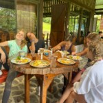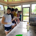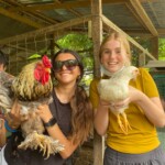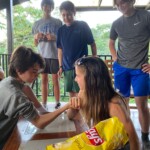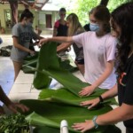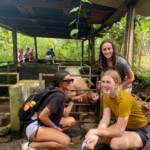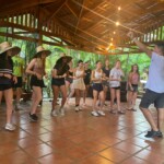 We got to Costa Rica around 7 pm and had to go on a 2 hour bus ride, we had dinner at 10 and arrived late at night. We have been staying in bungalós with 4 per room. It felt very jungle like! It is really pretty here and there are a lot of different animals and plants. The first day we were told we were going to a cheese factory. It was much different from what a lot of us pictured. To get there, we drove through a village and a lot of the houses were small and made out of cement, tree logs as beams, and tin roofs and walls. A lot of peoples’ houses were also their family business including the cheese factory. We got there and the family was super nice and they taught us how they make their cheese, and how to harvest rice. We had lunch with the rice we “de-shelled” (not really sure what to call it). We made the cheese in a room in their house that was similar to a small garage. They will see the mozzarella cheese we rolled into balls! After, we walked around their neighborhood, it is very different from ones in the U.S because their are no real street names and everything is surrounded by farms. We got to walk around and see pigs and chickens, and try new fruits. Many of us also got to talk to the kids in Spanish and try to hold a conversation. A lot of us got to learn how different our lives are from the kids here by attempting to talk to the kids. It was super fun and we got to see how families make a living!