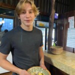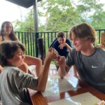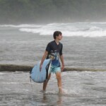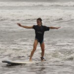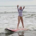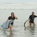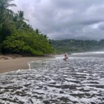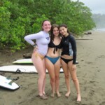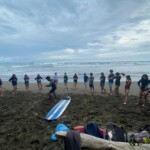 We started off the day with a delicious breakfast of pancakes, eggs, toast, lots of fruit and homemade coffee at 9am. After breakfast we took a group walk down the road to the beach where we hung out for about an hour and 1/2. We spent our time jumping in the waves and enjoying the beautiful views off the coast of Playa Uvita. After playing at the beach we walked back for another delicious lunch at our hotel and had another hour or so of free time before we went back to the beach to go surfing!  Once we got to the beach for day 1 of our surf lessons, we got right to riding some huge waves! It was high tide which meant the waves were massive, it was a super fun way to start day 1 of surf camp. After wrapping up day 1 of surfing, we came home got all showered and had an American dinner of hot dogs and hamburgers while we all watched Jumanji as a group. It was a super fun day and we can’t wait for day 2 of surfing tomorrow!