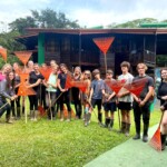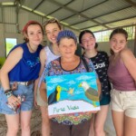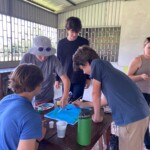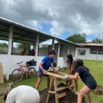 Today we went to El Futuro for the first time to learn about the community and projects we’ll be working on. We met the president of the community council and he showed us all of the projects previous Global Works groups had completed. We also met several women who had been home stay moms and cooked lunch for us. Because it was so hot, we postponed our morning work and instead painted inside the large eating room. The idea was to capture coexistence and friendship between Costa Rica and the United States. Our group symbolized this through birds, painting a toucan and bald eagle on the same branch. In between them we painted Dula Peep, the chick we adopted. Underneath, we painted the words Pura Vida as an iconic Costa Rican symbol of an easygoing attitude. One of the women, Rosa, especially loved our painting so we decided to give it to her after signing and dating it. Later, she sent a picture of it in her home. It was amazing to know that she appreciated the gift and also that she would have a token to remember us by. After lunch, a quick rainstorm passed us and left a cooler, although still hot and humid, working environment. We got to work cleaning the fence to paint and shoveling dirt to the walkway of the Catholic school that we’ll focus on for the trip. Tomorrow we will probably start pouring concrete for its floor. Then after a quick soccer passing game, we headed home back to the hotel for a restful evening by the pool!