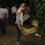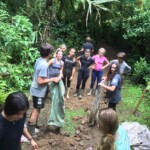 Today we woke up the earliest we had this week! Coffee, eggs, orange juice, sausage, and watermelon filled our stomachs at 7:00am. Then, we headed back to our rooms to get ready for the day. The plan was to help rebuild some paths next to Pocosol. Most of us headed into this activity thinking we were going to be given machetes! It turned out that we were shoveling dirt into sacks, loading it onto an ATV, and laying the new dirt onto a rundown and muddy path. We were split up into two groups—one for shoveling and one for laying dirt. We worked for around three hours before we hiked up the path for lunch and a break. Lunch consisted of rice and more rice. Lunch went by quick and then back to work we went, and after two more grueling hours of work we were done! We started back up the path when all of the sudden it started raining buckets. After a while we all showered the grime out and then headed to dinner. For dinner we had rice and soup, all of which was great! We ended the day with a reflection and a meeting, and everybody was cooked, so we all headed to bed!