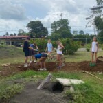 Woke up early to eat a breakfast of pancakes, eggs, and rice. After finishing breakfast, we were on our way to the community El Futuro. In the heat, we cleaned off the fence so we would be able to paint it later, and dug up dirt to make a garden in front of their Sunday school. We also laid dirt to prep for the concrete floor that would be laid tomorrow. For our break, we ate a delicious lunch of rice, plantains, “torts” a fried beef patty, and mash potatoes. We went back to work right after finishing our meal, making sure everything was prepared for putting the concrete down the next day. After finishing our work for the day, we played a game of fútbol with our new friends, Alexander, Akai, and Schneider. After we finished with all the work and the game of fútbol it was time to leave, and we headed to our “buseta” to go home. We then had some free time and many people swam in the hotel’s pool to cool off. After swimming we headed for dinner and had a good dinner to finish off the day. Finally, around 10pm, we headed to our cabins and went to bed.