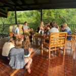 Today we woke up bright and early at 5:30 AM, and brought our bags out to the bus. We had to leave early due to a scheduled protest that could potentially block some main roads. We all caught up on the missed sleep over the past couple of nights and slept on the bus. We stopped at a local Costa Rican restaurant for breakfast and enjoyed a buffet with homemade food and coffees. After breakfast we got back on the road and sang tunes while laughing and reminiscing on the trip. We then stopped and walked along a bridge that looked onto a river filled with alligators. Back on the bus for 4 hours until we stopped at a restaurant for lunch with a beautiful view over looking the ocean!  After lunch we hopped back onto the bus until we arrived at our beach hotel. After settling in we walked 5 minutes to the beach and ran around on the beach during a gorgeous sunset. We took photos and played in the water, and ended with a team meeting overlooking the sunset and ocean. We walked back to the hotel and enjoyed a homemade barbecue and then all quickly passed out after a long travel day.