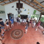 Wassup beaches! We’re coming to you live from an early morning in Dominical to let you know what we did yesterday. We started off by waking up at 6am to beat the traffic of the strikes going on that day. We all dropped off our bags at 6:30am and turned in our room keys before we continued up for breakfast. We all ate pancakes with syrup and some fruit. Then, we all helped put our bags on the bus and all hopped in. We headed off to our new adventure at the beach. We stopped to see some crocodiles and see local town living. Then we stopped for lunch for about an hour. After that, we drove for about 2 hours until we arrived at our hotel. We all decided to go to our rooms for 30 minutes then come back to all go to the beach. Going to the beach was an amazing experience and one of the most fun things we’ve done. We got to watch a beautiful sunset and float among the waves for about 2 hours. Then we all went back to the hotel for dinner. After dinner, we were given time to chill before our nightly meeting. At the meeting, we announced new leaders, talked about highs and lows (and ways we could grow for the well being of the group), and did an appreciation activity that left everyone feeling very loved. Then everyone headed off to chill a little bit before we all headed off to sleep. Now we’re super refreshed and ready for our surfing lesson today. Sending love!