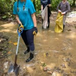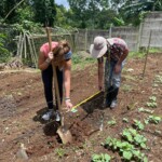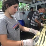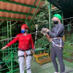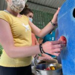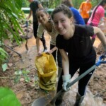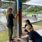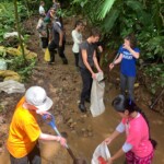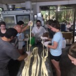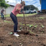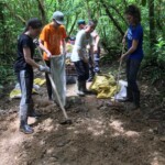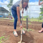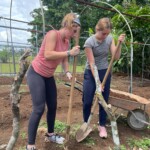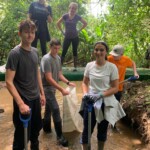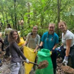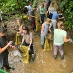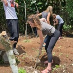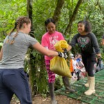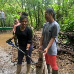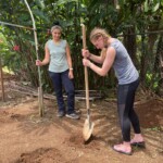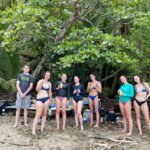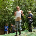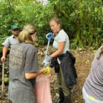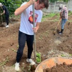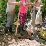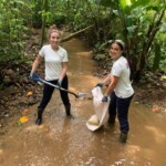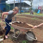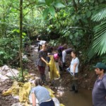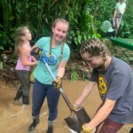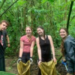 After breakfast we had a 20 minute meeting which we learned key Spanish vocabulary terms for the work we’d be doing. For example, we learned the work for rake is “rastrillo.” The hike lasted about 15 minutes to arrive to our worksite, which was at a stream in the middle of the rainforest, 4 people from the group split off to help reconstruct the trail while the rest of the group shoveled dirt and rocks from the stream into bags that the rest of the people carried onto the “carreta” which is the wagon attached to the ATV.