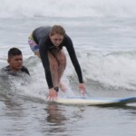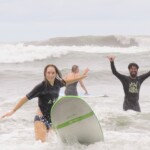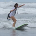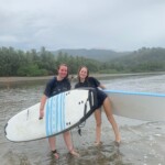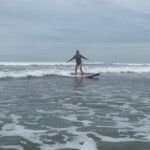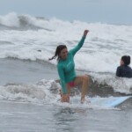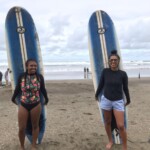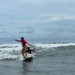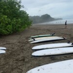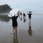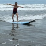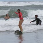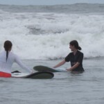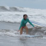 We woke up a little later today for an 8:30 breakfast which consisted of fruit loops, which were a big hit, rice and beans, eggs, coffee and juice. We then had a quick meeting before heading off to the beach for our surfing lessons. The beach was a 5 minute walk from our hotel. Once we arrived we received a quick tutorial about how to surf and then we split up into groups with instructors and jumped in the water. The water was really warm, salty and there were huge waves. Everyone had a blast surfing and also finding shells. We surfed for about 2 hours before heading back to the hotel for lunch which was chicken, pasta, and sauce. After lunch everyone showered and relaxed for a few hours. During our free time people played cards, talked and went to the grocery store. We then had dinner which was pizza and then capped the night off with a meeting and headed to bed.