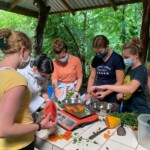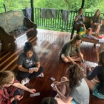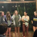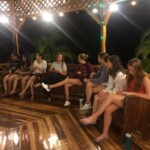 As we finished dinner, we had a meeting to discuss our roses, thorns, and buds in regard to the trip. After, half of the group went out on a night hike in the forest even though it was pouring rain; they came back soaked but they had fun! While they were out hiking the rest of us who stayed played cards and hanged out with each other until it was time for bed.