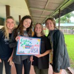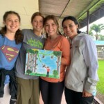 Hey! Today was a super fun day full of surprises! First we started out by having a delicious Costa Rican breakfast of rice beans and eggs. After everyone had their coffee and was satisfied, we loaded into the van and headed to our last day at the school. We started off finishing painting the school, and even though we all thought we were sick of painting we still had fun. Lunch was a special treat and everyone got to get what they wanted and was happy. As a fun little parting gift to the community La Lucha, we all got to paint on canvases what we thought represented Costa Rica and the U.S. The best surprise yet was the little key chains and notes that the the principal gave us that was from all of the kids and community. Although it was hard to say goodbye to all our hard work and new friends at the school, we all needed a rest a big night ahead. For dinner the community at Hotel Heliconias threw us a karaoke party with kabobs, chips, and dip and lots of talent was shared throughout the night. We ended the night with soccer and volleyball on the field, and late night dip in the pool. What a great way to leave behind a great part of our trip!
