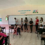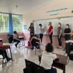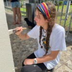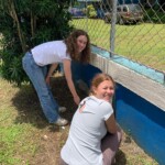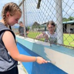 Hey everyone!! Today we woke up at 7:30 for a breakfast of pancakes at 8. After we ate, we took a short bus ride to the community school that we will be working at for the next few days. It was super fun to meet the kids and we all got the chance to teach some English lessons. The group split up between teaching the alphabet, numbers, and some basic English phrases. The kids were adorable but a few might have fallen asleep at our attempts. Once we finished with our lessons, the group had the usual lunch of rice, beans, and chicken with a pineapple juice on the side. Halfway into our lunch we were pleasantly surprised with some white faced monkeys who decided to visit the school. We unsuccessfully tried to feed them bananas. After lunch, we got right into the service work at the school. We split into two groups, some of us painting the front wall of the school while the others did digging in the vegetable garden. Finally after many ant bites we got back on the bus and headed back to the hotel. Some of us went to the pool and hung out there for a while, and others enjoyed some quiet free time in our rooms. Dinner was at 6:30 and was pasta (everyone’s favorite). After eating we had our usual end of day meeting and ended up seeing a bat in the meeting spot. Shortly after we all headed to bed. It ended up being another amazing day in Costa Rica, we can’t wait to see what comes next!!