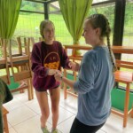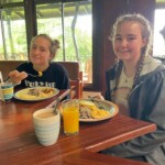 We woke up to a later breakfast before cleaning up and heading home from pocosol. For breakfast we had eggs, fried cheese, rice and beans, sausage, and fruits. After breakfast we cleaned our rooms for the staff so they would have less work and then sat in the common area for a little before boarding the busses and heading back to hotel heliconias. On the way back we listened to music and talked. It was an interesting ride back because there were some bees in our bus we had to get out. The ride back felt much faster than the ride up. After getting back to the hotel we had an hour to relax wind unpack before heading into fortuna downtown for lunch, laundry and shopping. We dropped our clothes off at the laundromat and headed to lunch. We all had a variety of different foods ranging from hamburgers, pasta, chicken, rice and beans and for desert we had vanilla ice cream. We also celebrated Emma and piper’s birthdays by singing to them. After that we were given an hour to explore downtown and the shops. We all bought souvenirs for ourselves and our families. We then headed to the laundromat to grab our clothes and then to the grocery store for some last minute snacks. Then we took the bus back to the hotel and got ready for dinner. For dinner it was rice and chicken with tortilla chips and salad. We then we’re able to relax for a little while before meeting back up as a group to prepare for our English lesson with the children at the school. We prepared lessons in small groups and discussed how to teach them. Then we headed back to our rooms to get ready for bed.